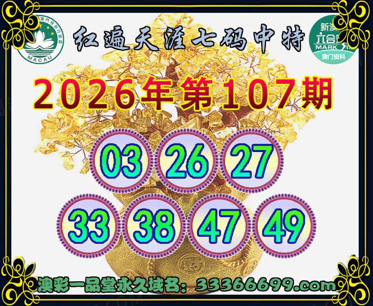 107期: 『红遍天涯』 七码中特【03.26.27.33.38.47.49】开:49
